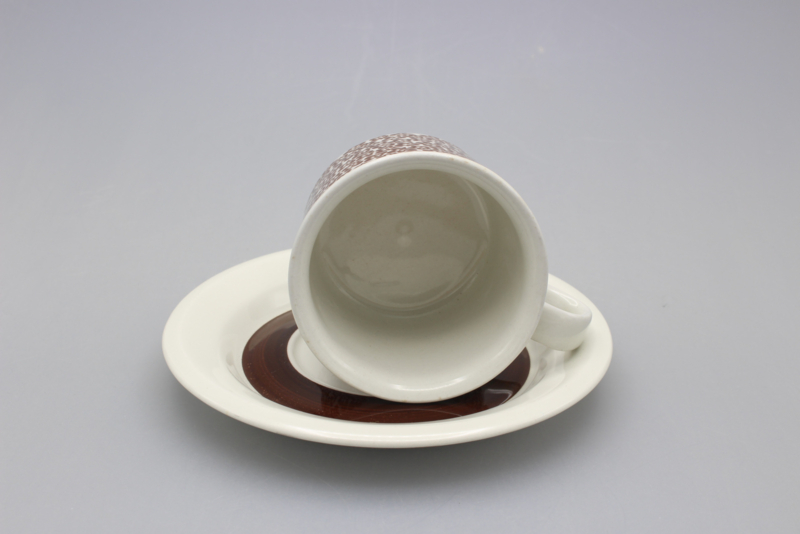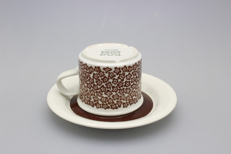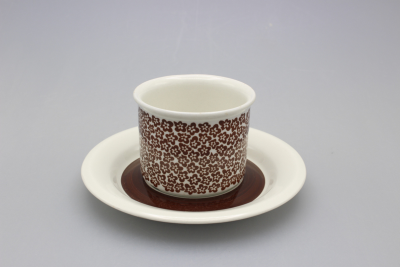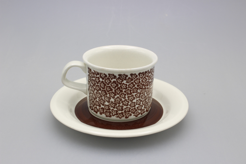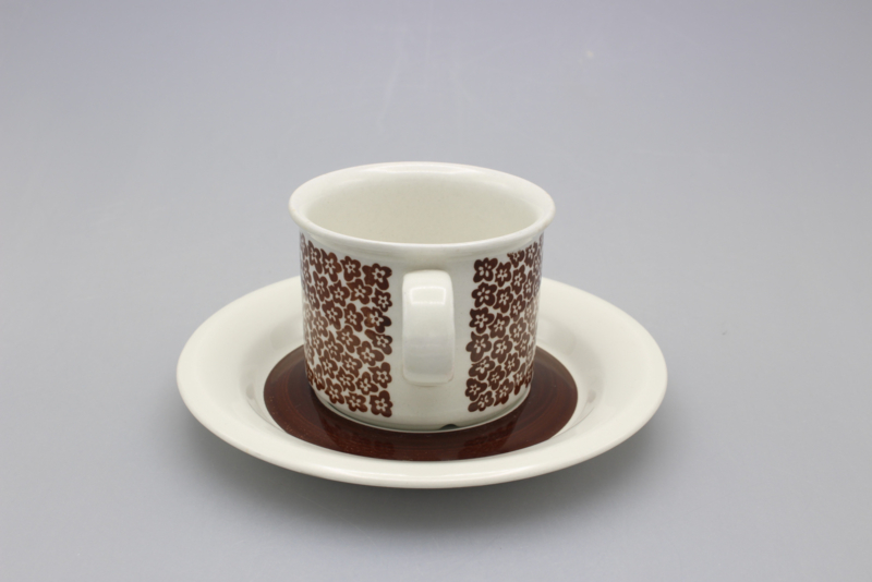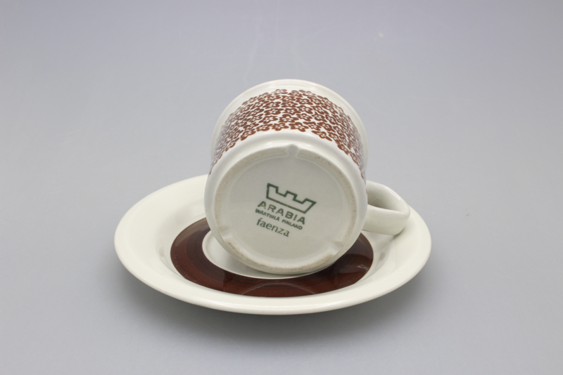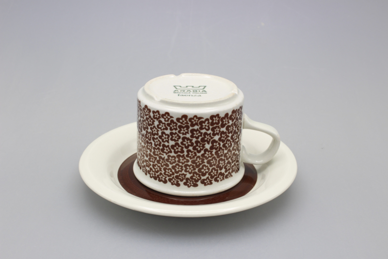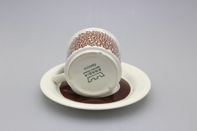 ARABIA FAENZA CUP AND SAUCER - BROWN FLOWER