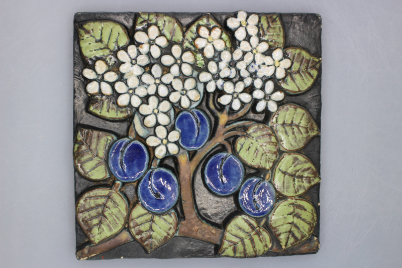 The POMONA series consists of a collection of four wall plaques designed by Lisa Larson for Gustavsberg. The series was designed in 1971 and produced between 1974 and 1979. The plaques feature the following motifs: "Jordgubbe" (strawberry), "Päron" (pear), "Nypon" (rosehip), and "Plommon" (plum) and are highly collectible.